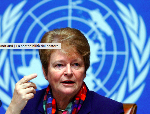 dal Club di Roma a Ministro della Svezia per arrivare alla Commissione Mondiale sull’Ambiente e lo Sviluppo, guidata da Gro Harlem Brundtland, ha pubblicato il suo famoso rapporto, definendo il concetto di sviluppo sostenibile come “uno sviluppo che soddisfi le esigenze del presente senza compromettere la capacità delle generazioni future di soddisfare le proprie esigenze.”